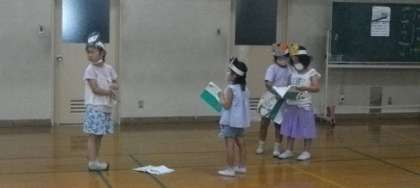 1年生が国語科の学習で「おおきな かぶ」の音読劇に取り組んでいます。