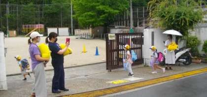 本部役員さんも校門前にかけつけて子どもたちに声をかけてくださいました。