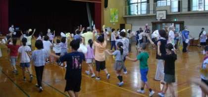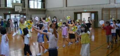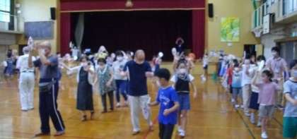 先週には、1・2年生が踊りの体験をしましたので、今日は、3・4年生が体験をしました。市原野地域で,伝統や文化を大切に守り育てておられる保存会の皆さんの思いや願いにふれることができました。