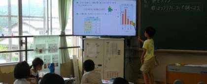 3年生は、算数で表に示された内容からわかることを発表しています。