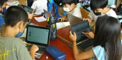 タブレットの使い方もいっしょに勉強しています。丁寧に使っていますね。