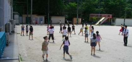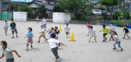 3年生は、中間休みに「みんな遊び」に取り組んでいました。 (今日は雲が多いので、意外に涼しく感じます。)