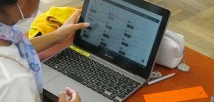 3年生は、デジタルドリルで復習問題に取り組んでいます。全部〇になるまで、取り組んでいます。