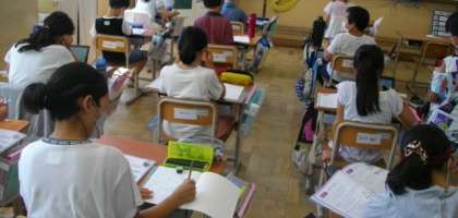 5年生の理科の学習の様子です。発芽のようすについて、教科書や図鑑、タブレットを使って調べてまとめています。