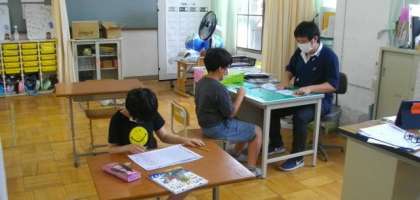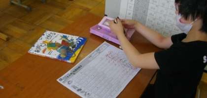 3組では、個別の学習に取り組んでいます。集中して課題に取り組み、できた後に先生にアドバイスをもらいながら、いっしょに考えています。