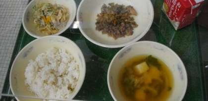 給食の準備が始まりました。