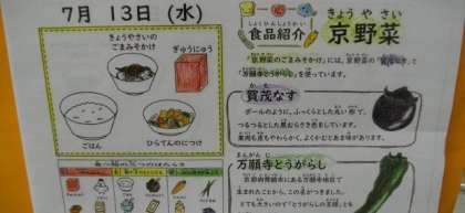 ごはん,平天の煮つけ,京野菜のごまみそかけ,牛乳