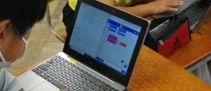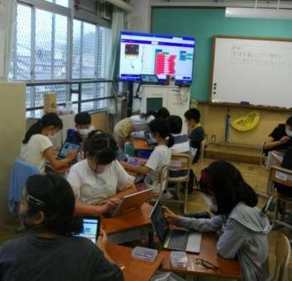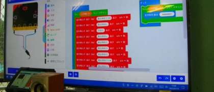 今日は、マイクロビットのプログラミングで、音階のある音を出せることが分かったので、友達が喜ぶ音楽とその流し方について考え、プログラミングを始めています。