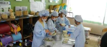 給食の準備が始まりました。