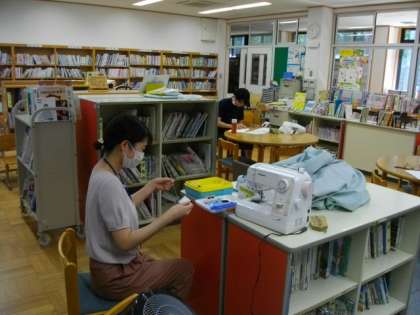 カーテンの補修をしたり、タブレットPCの更新プログラムを導入したりするなど、2学期に向けて準備をしています。