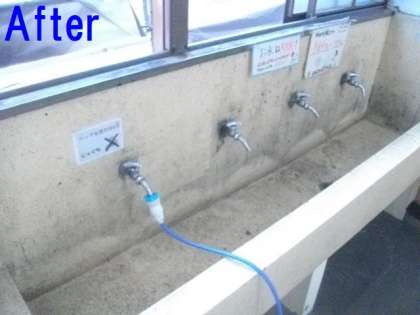 洗面所は石製ですので、墨や絵の具が隙間に入りやすいようです。きれいになりました。