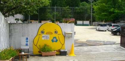 BIGいちたくんも、校門前でみんなが登校してくるのを楽しみに待っています。