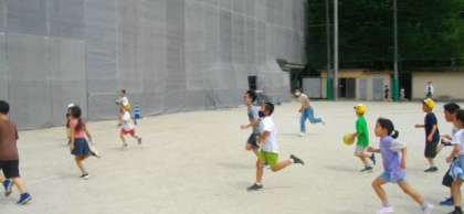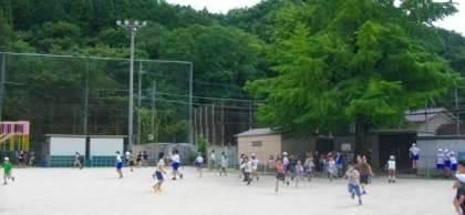 終わりのチャイムがなると、いっせいに走り出して校舎に入く様子がみられます。