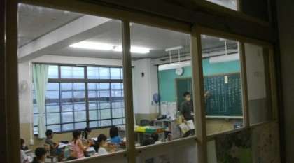 曇りや雨の日は、電灯の光によって、窓ガラスの汚れがよく見えるものですが、担任の先生や子どもたちの意識によって、普段から”ぴっかぴか”に磨いてある教室がいくつもあります。廊下から見ていても、透き通っているのがよくわかります。