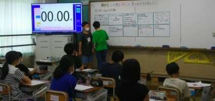 5年生は、算数科でどうすれば公約数をはやくみつけられるのか、方法を話し合っています。