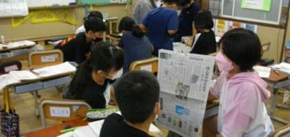 5年生は、新聞からわかる情報を読み取って意見交換をしています。