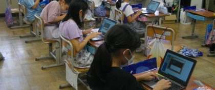 4年生は、少しの時間を使って、キーボードの入力練習に取り組んでいます。