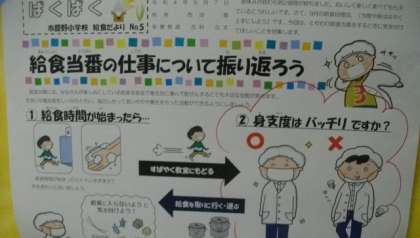 今月の特集テーマは、「給食当番の仕事について振り返ろう」です。