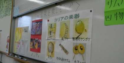 5時間目に5年生は、「コリアの音楽を楽しもう!」をテーマに学習を進めました。