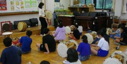 サムルノリ(사물놀이)は、コリアの楽器であるケンガリ・ チン・チャング・プクを用いた音楽です。さっそくチャングを手にとって、音を鳴らしてみました。