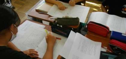 6年生は、「大切にしたい言葉」を学習する中で、学級の「座右の銘」集を作ることになりました。下書きを読み合って、推敲に取り組みます。
