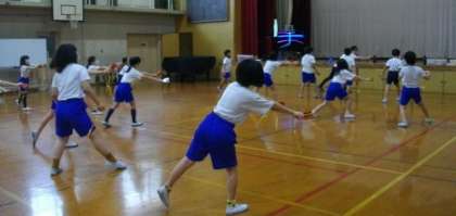 4年生は、ソーラン節の練習に取り組んでいます。
