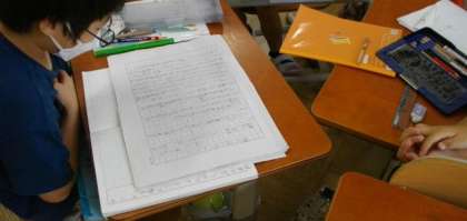 2年生は、作文に取り組んでいます。原稿用紙にたくさん書けましたね。