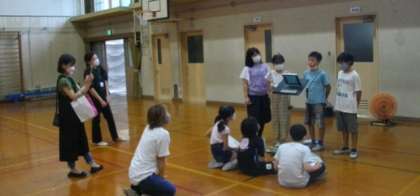 4年生は、体育館で「昔から続く京都府の祭り〜祇園祭〜」について調べたことやわかったことをロイロノート・スクールのカードにまとめ、発表しています。
