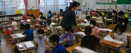 1年生は、算数で、「3つのかずのけいさん」の問題にとりくんでいます。