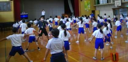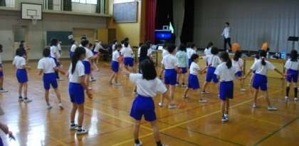 3,4年生が、合同で演舞の練習を始めています。