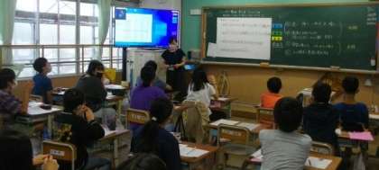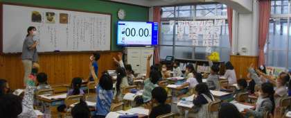 1年生は、「うみのかくれんぼ」を読んで、どんな生き物が登場したか、発表しています。