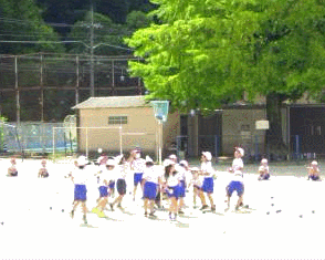 1・2年生は、運動会に向けて玉入れの練習をしています。