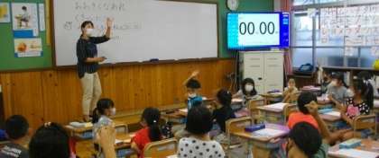 1年生は、アサガオの種を収穫して数を数えていました。