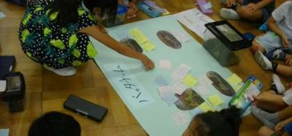 1年生は、生活科で「いきものと なかよし」の学習に取り組んでいます。ウサギの様子をまとめたり、金魚を飼う計画を立てたりしています。