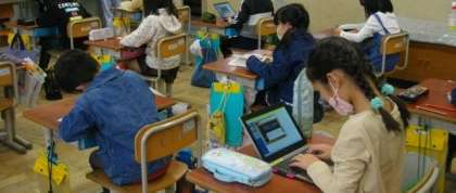 3年生の様子です。ちょっとした時間を使って読書やキーボード練習に取り組んでいます。