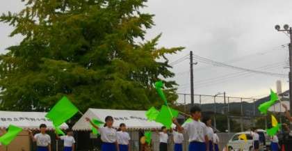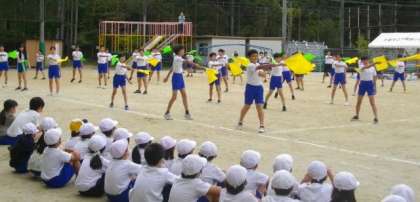 6年生は、集団行動とフラッグによる演技を披露しました。