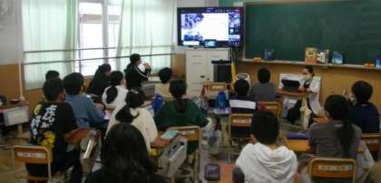 今回は、オンラインを通じて、「洛北中学校の学校生活」について、紹介をしていただいたり質問をしたりしました。
