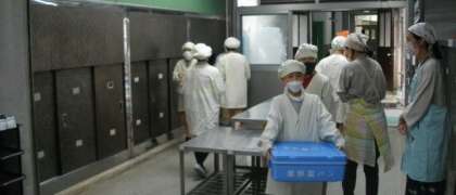 給食の準備が始まりました。