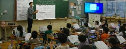 5年生は、体育でバスケットボールの試合の進め方について学習をしています。