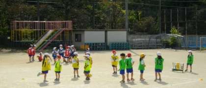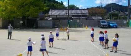 1年生は、体育でころがしドッジに取り組んでいます。