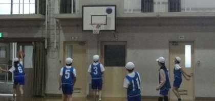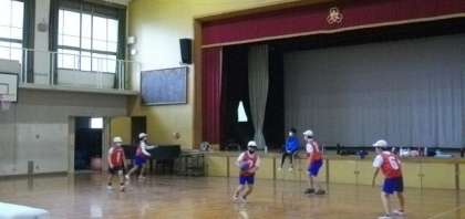 5年生は、バスケットボールの練習中です。