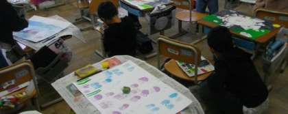 3年生は、言葉から形や色を想像して、絵を描いています。