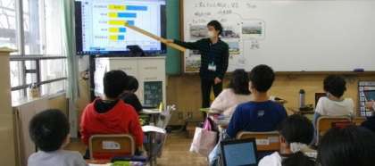 5年生は、社会科で、空港別の輸出額と輸入額について、グラフを見ながら話し合っています。