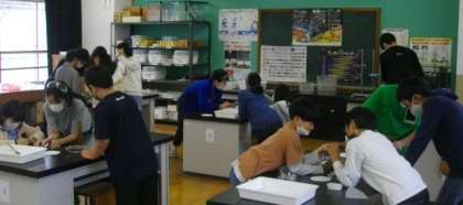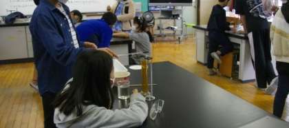 5年生の理科の実験の様子です。