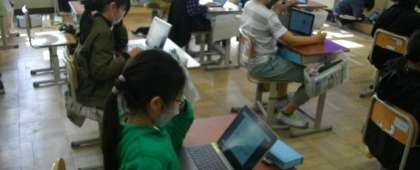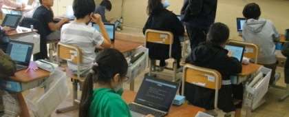 4年生は、クラスをよくするために何ができるのかを、全員がロイロのカードに書き込みました。時間をきめて、全員の意見を読んでいます
