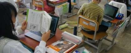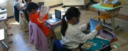 3年生は、お気に入りの「ことわざ」を本で調べて、ロイロノート・スクールのカードに記入しています。