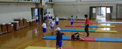 4年生は、体育でマット運動に取り組んでいます。