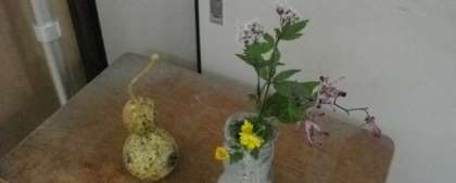 茶道体験でいけていたお花を頂戴しましたので、校長室前に置きました。
