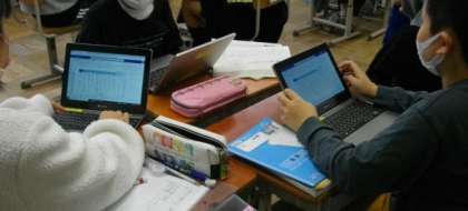 5年生は、国語で、段落ごとの意味をとらえ、文の構成を考えて整理しています。