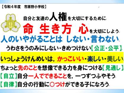 教室には自分と友達の人権を大切にするために、そして安心して楽しく過ごすことができることを願って貼っているものがありますね。少し読みます。